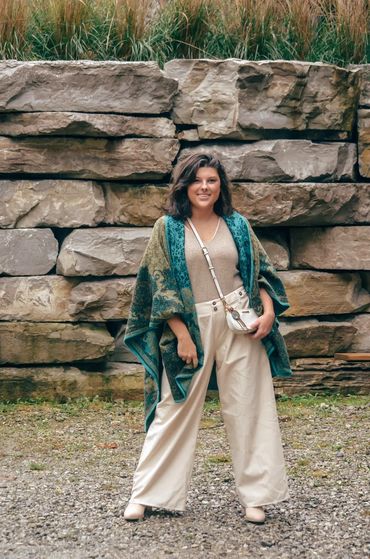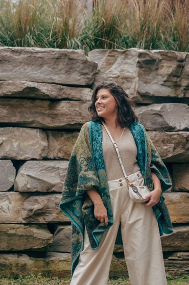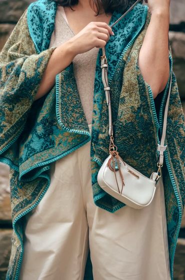 Emma told us she wanted a tassel to match her favorite deep turquoise wrap. We obliged! Now Emma is out on the town feeling pretty and special in her unique purse adornment!
