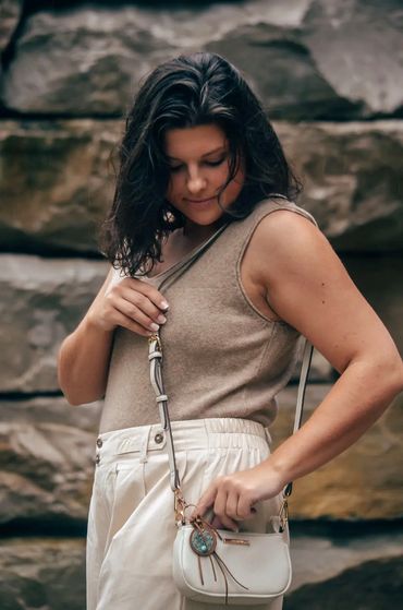 Lapeer-area resident Emma Motala spent the day with her adorable daughter Emryn at the farm she grew up on. Emma is wearing a blush pink Boho Tassel with pink beading. It's the perfect complement to a fall sweater on a sunny fall day!